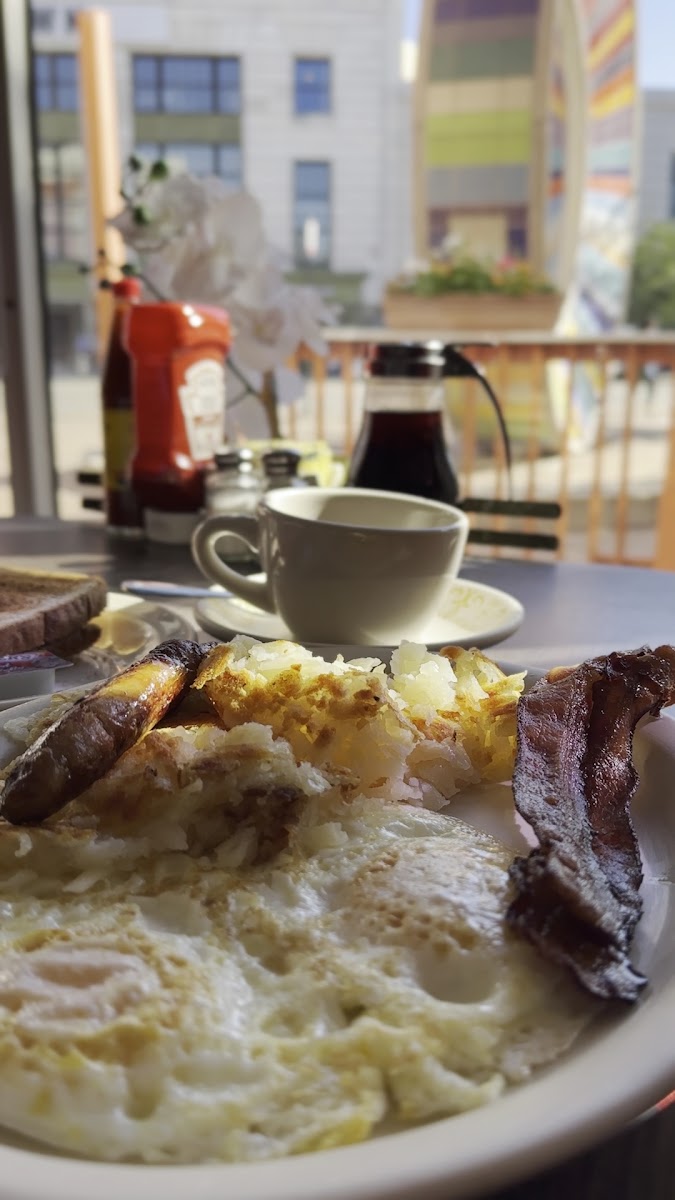 When it comes to breakfast I always get over medium eggs with sausage and hash browns. What matters to me is flavorful sausage and soft golden potatoes, this place got it right. A little pricey but I would come back. Maybe it’s because I ordered a slice of cheese on it with a side of tomato