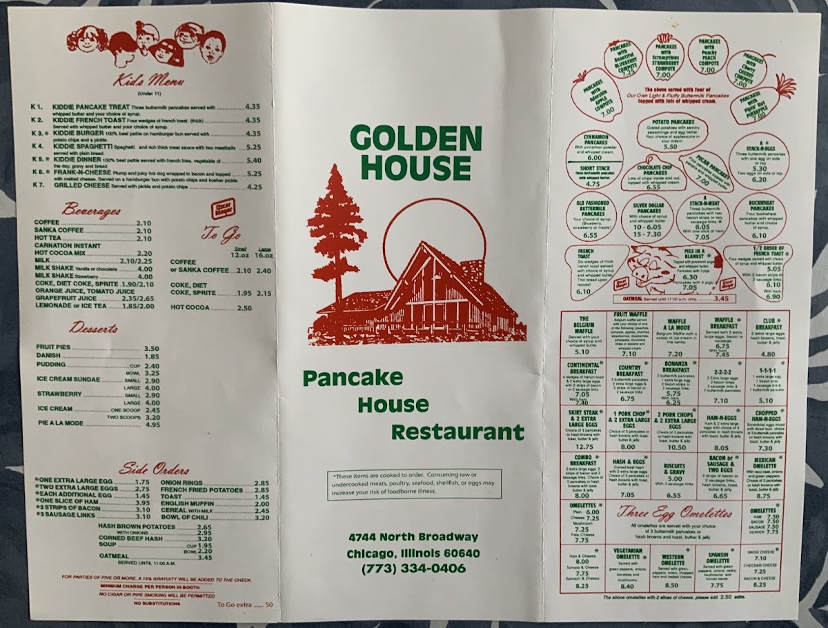 Golden House Restaurant & Pancake House Menu